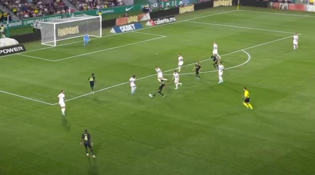 第26分钟,阿拉巴左路内切与克罗斯和本泽马连续撞墙,杀入禁区后左脚推射破门,但因本泽马越位在先,进球无效。